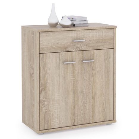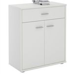 ... est disponible dans différents coloris très modernes qui vous permettront de l'associer facilement avec le style de votre intérieur. Grâce à son tiroir et l'espace libre derrière les 2 portes, avec une tablette de séparation, vous pourrez ranger toutes vos affaires du quotidien et les mettre ainsi à l'abri. Enfin, le mélaminé confère à ce meuble de rangement une meilleure résistance aux frottements et aux salissures et le rend très facile d'entretien.