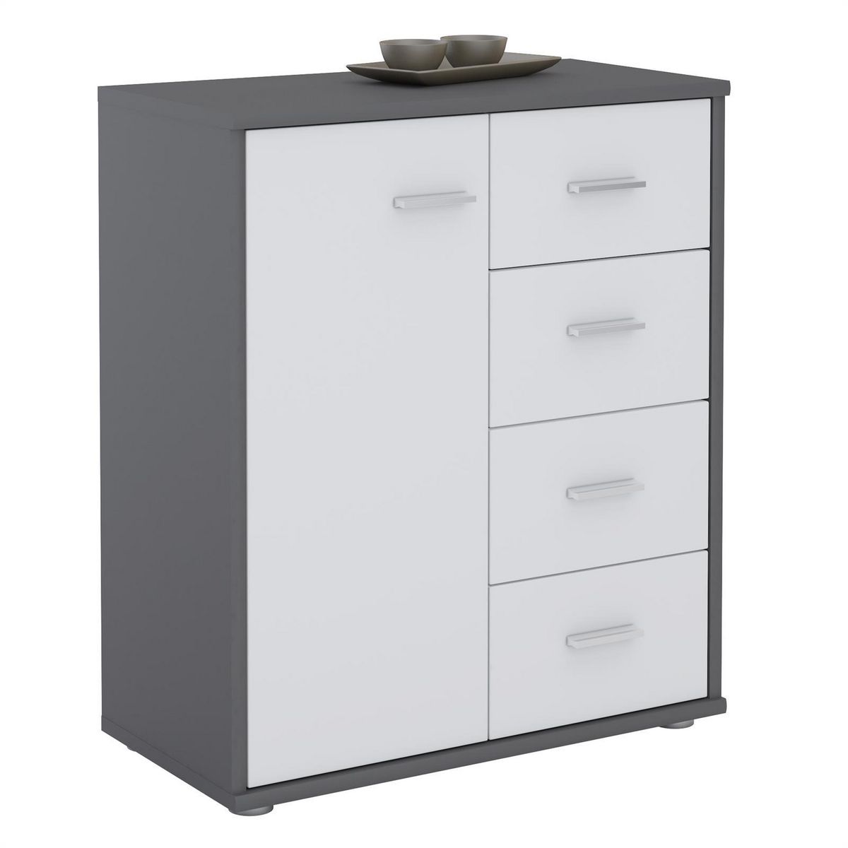 - Avec 4 tiroirs et 1 porte, dissimulant 1 tablette de séparation fixe
