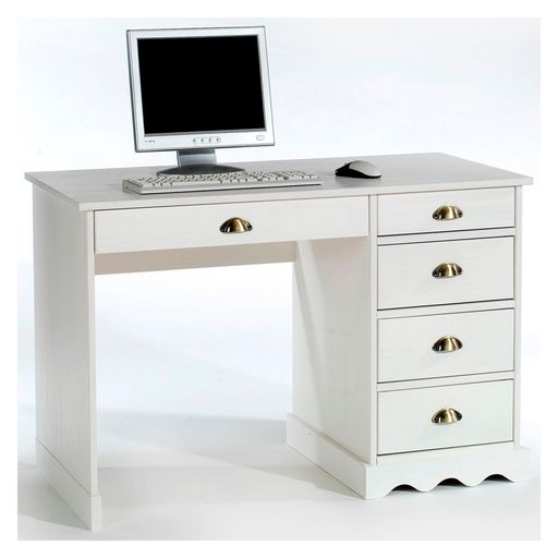 ... avec son style altique est idéal pour meubler de manière élégante votre bureau. Doté de 5 tiroirs, 1 grand au centre et 4 plus petits sur le côté, il vous permettra d'organiser votre travail de façon optimale et de ranger toutes vos affaires personnelles. Les poignées en forme de coquille apportent une touche de charme supplémentaire à ce bureau et soulignent son style maison de campagne.