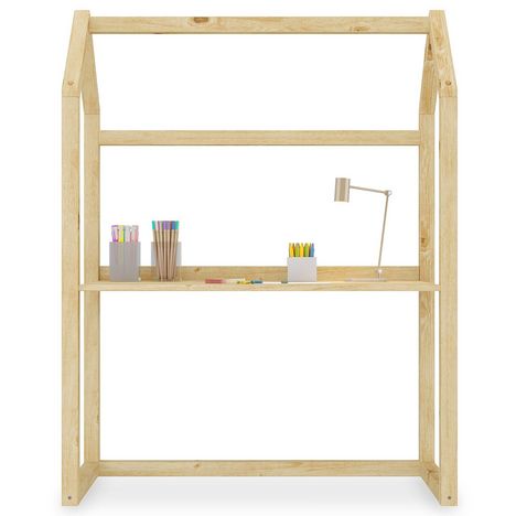 ... sera un élément de décoration à part entière dans la chambre de votre enfant. Ce bureau évolutif est réglable en hauteur afin de s'adapter à la croissance de votre enfant et de l'accompagner durant toute son enfance. Avec son design minimaliste en forme de maison, il pourra être décoré selon les envies de votre enfant. La structure en pin massif en fait un bureau naturel qui s'adaptera facilement avec le reste du mobilier.