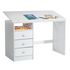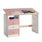 Bureau enfant KEVIN, en pin massif, 3 tiroirs et plateau inclinable, lasuré blanc et rose