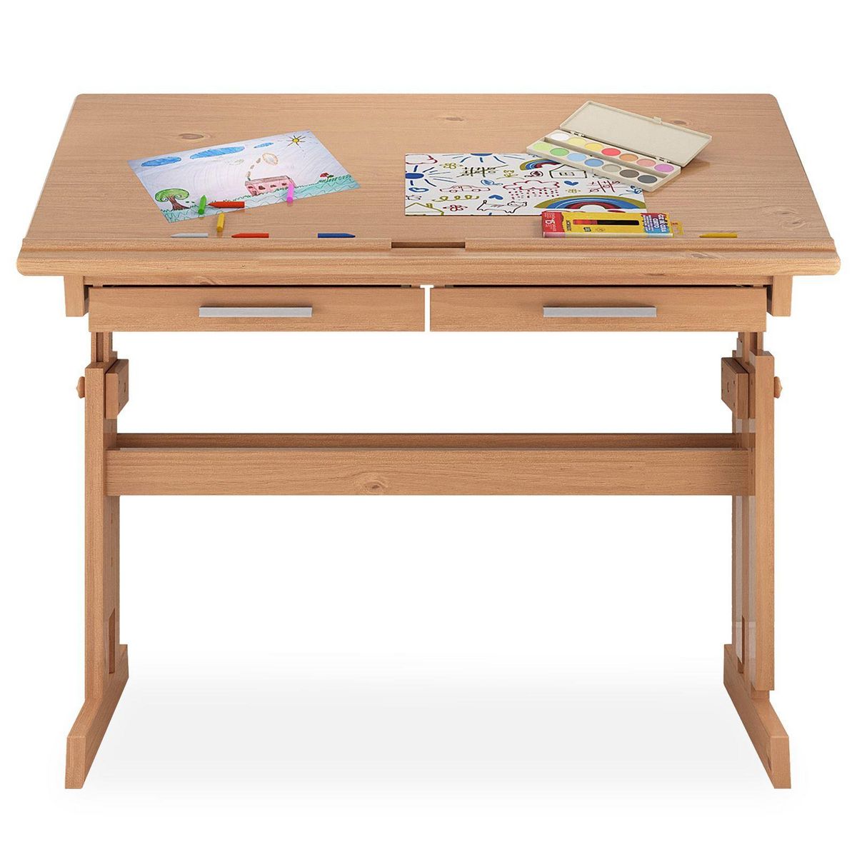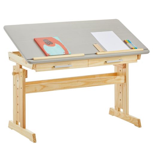 Bureau enfant OLIVIA, en pin massif, réglable en hauteur et plateau inclinable, lasuré couleur hêtre