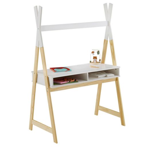 Bureau enfant SIMI en forme de tipi, avec 2 niches, en pin massif