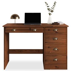 Bureau LANA avec 5 tiroirs en pin massif - Brun foncé