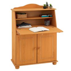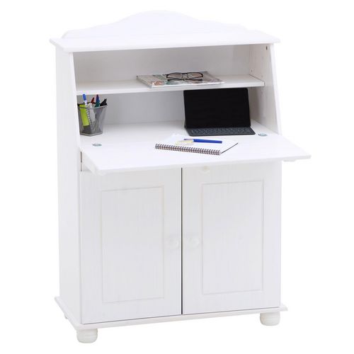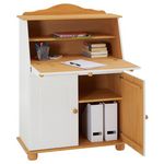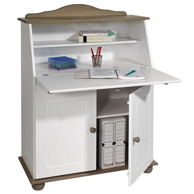 - Le secrétaire est fabriqué en pin massif, disponible dans plusieurs coloris : finition teintée/cirée, lasuré blanc, lasuré taupe, lasuré taupe et blanc, ou lasuré blanc et brun.