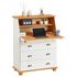 Bureau secrétaire GOMES avec 3 tiroirs en pin massif lasuré blanc