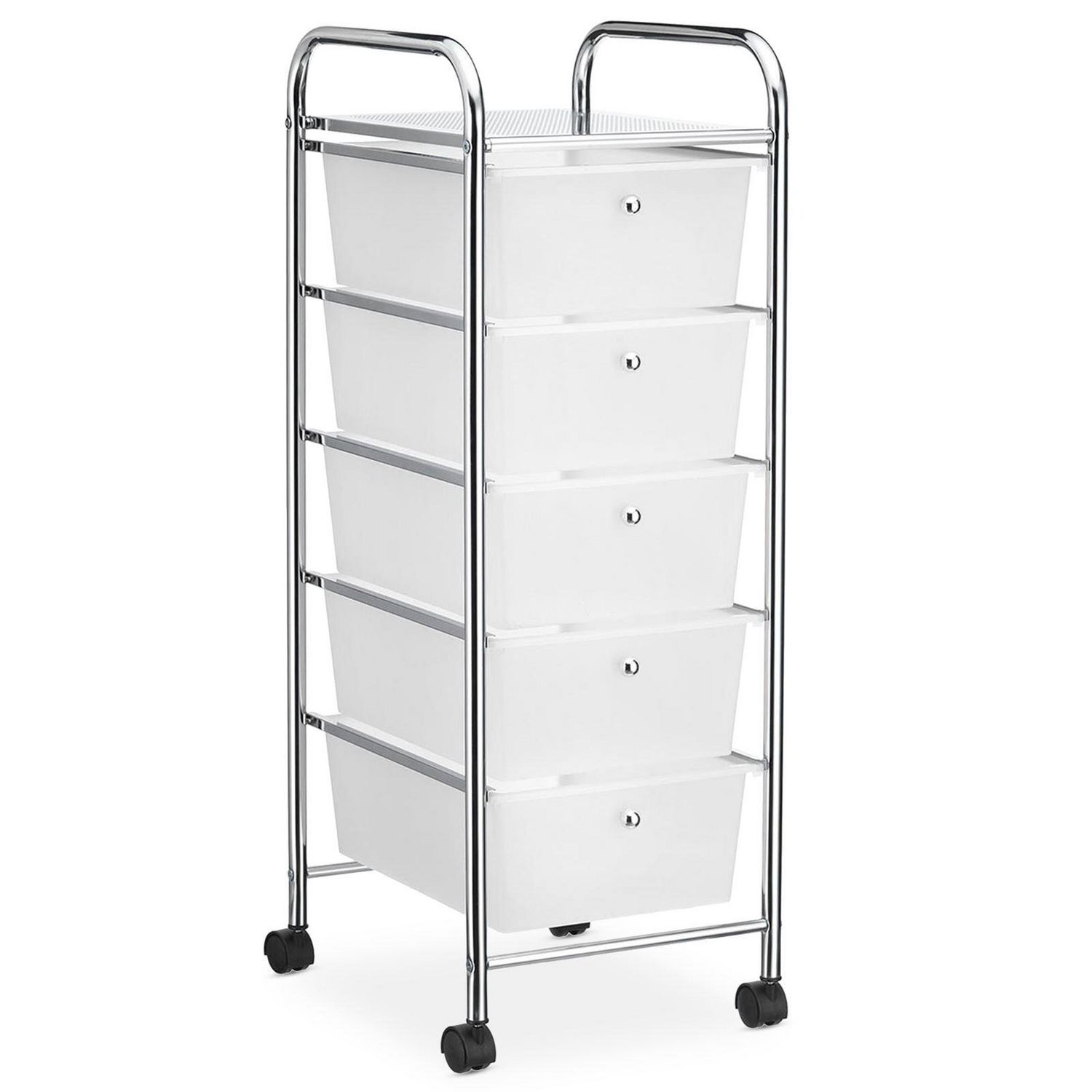 Caisson sur roulettes GINA, en métal chromé avec 5 tiroirs en plastique blanc