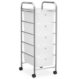 ... est une solution de rangement très pratique et incontournable pour garder de l'ordre chez soi. Vous pourrez tout y ranger soigneusement, que ce soit les cosmétiques et produits hygiéniques de la salle de bain, des ustensiles et divers contenants de la cuisine, les jouets de vos enfants ou même vos documents personnels pour organiser votre bureau. Les 5 tiroirs en plastique blanc transparent vous permettent ainsi de ranger toutes vos affaires à l'abri, et les roulettes facilitent le déplacement de ce petit meuble où que vous en ayez besoin. Une tablette est également à votre disposition pour y déposer quelques objets du quotidien à portée de main.