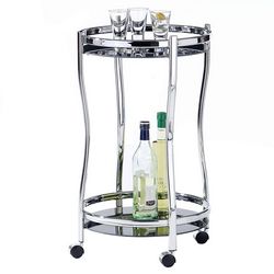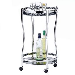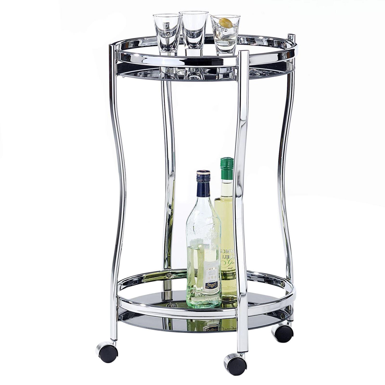 Chariot de service VEGA, en métal chromé et verre trempé noir