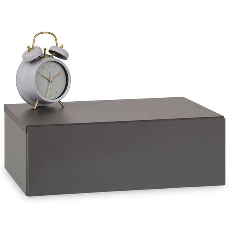 ... est idéal pour compléter l'ameublement de votre chambre avec style et design ! Le plateau supérieur offre assez de place pour votre lampe de chevet, votre réveil et un livre ou deux, et vous pourrez ranger d'autres affaires indispensables dans le tiroir, stylisé avec son ouverture sans poignée. Cette étagère peut aussi faire office de meuble d'appoint dans un couloir ou une entrée, parfait pour décorer un mur avec son allure moderne. Ainsi, vous pourrez la fixer à n'importe quelle hauteur, bénéficier d'un rangement supplémentaire et gagner de la place contrairement à du mobilier debout. Enfin, le mélaminé confère à cette étagère une meilleure résistance aux salissures et la rend très facile d'entretien.