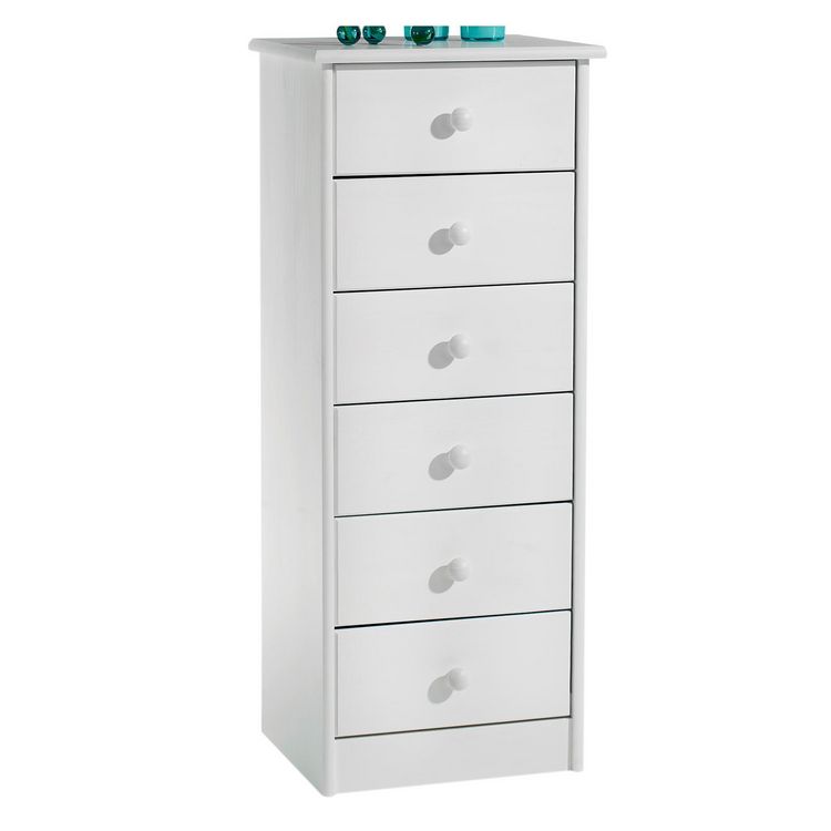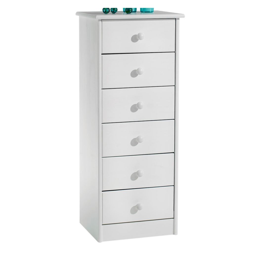Chiffonnier en pin RONDO, 6 tiroirs, lasuré blanc