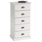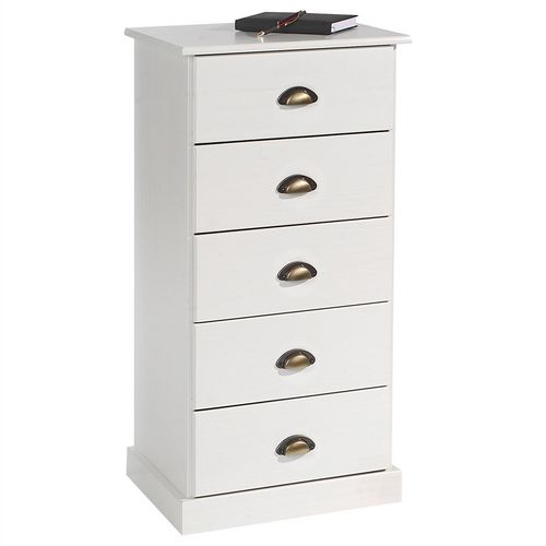 Chiffonnier PARIS en pin massif, 5 tiroirs, lasuré blanc