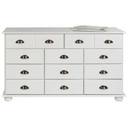 ... vous permettra de ranger de nombreuses affaires. Que vous la choisissiez en version 4, 8, 11 ou 12 tiroirs, cette commode apothicaire de la collection Colmar apportera un charme indéniable à votre pièce. Ce meuble de rangement en bois massif au style altique, souligné par ses poignées décoratives en forme de coquille et ses pieds en forme de boule, trouvera facilement sa place dans un salon ou une salle à manger.