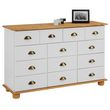 Commode apothicaire COLMAR en pin massif, 11 tiroirs, lasuré blanc et brun