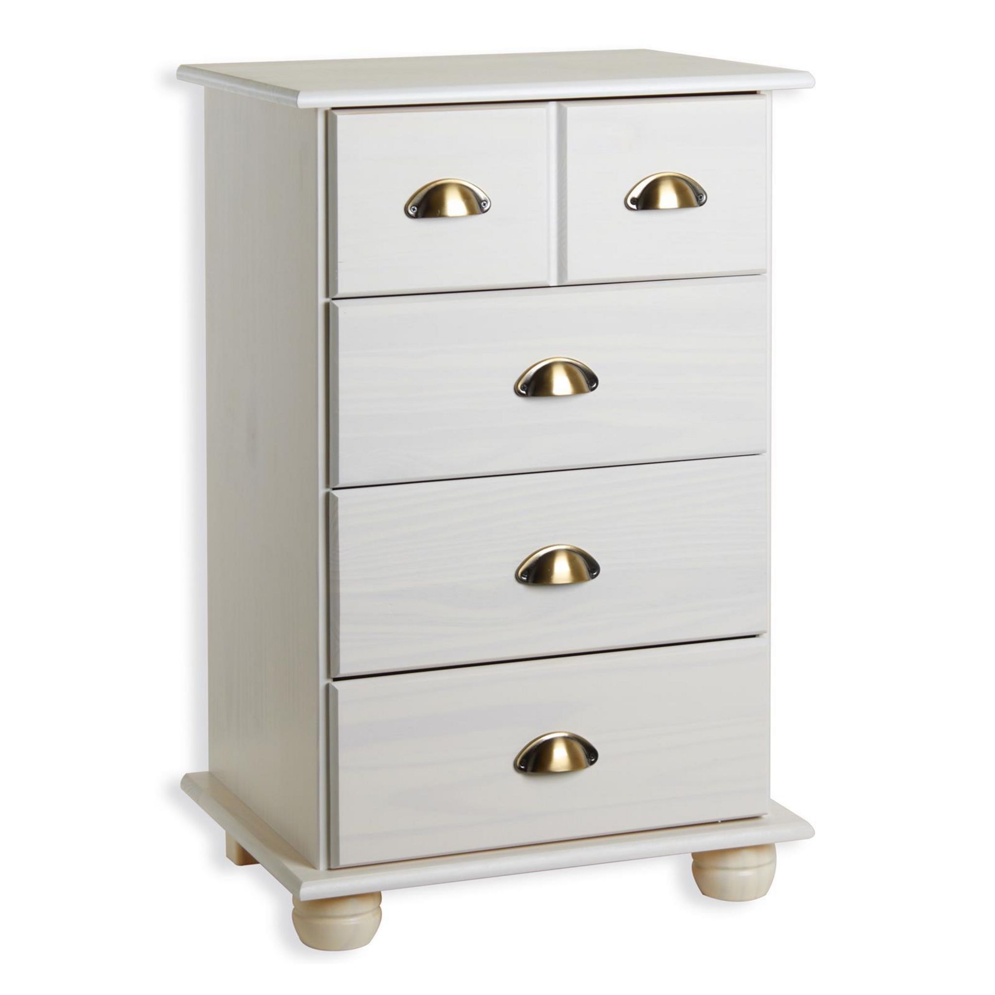 Commode chambre COLMAR L 49 cm en bois massif - Blanc et brun