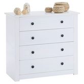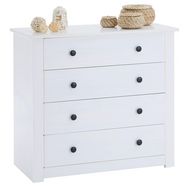 Commode chambre PAULO L 73 cm en bois massif blanc avec 4 tiroirs, meuble de rangement à vêtement