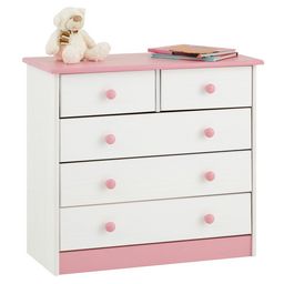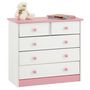 - La commode est fabriquée en pin massif et disponible dans 3 finitions : vernis naturel, lasurée blanc, ou bien lasurée blanc et rose.