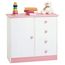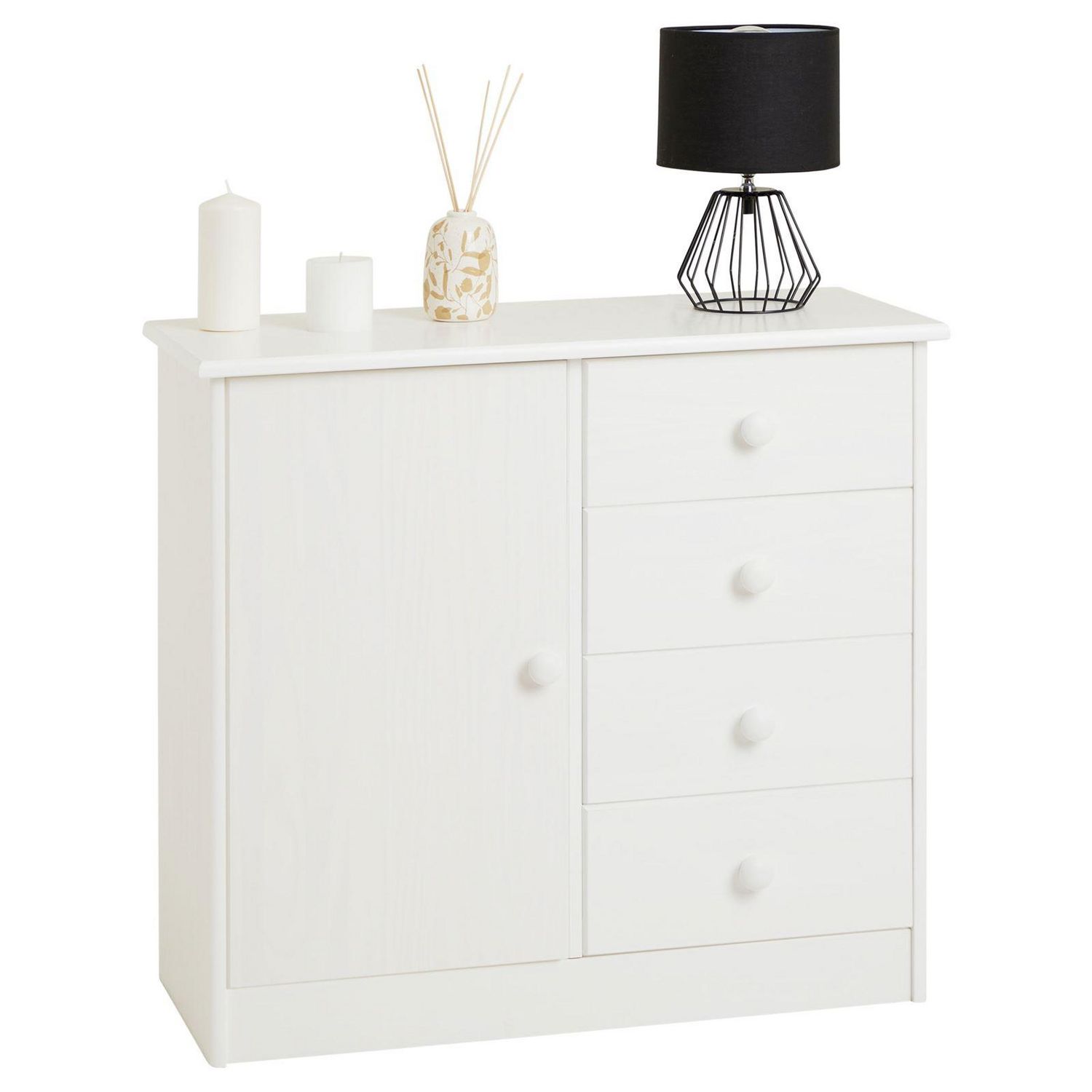 Commode RONDO en pin massif, 4 tiroirs et 1 porte, lasuré blanc