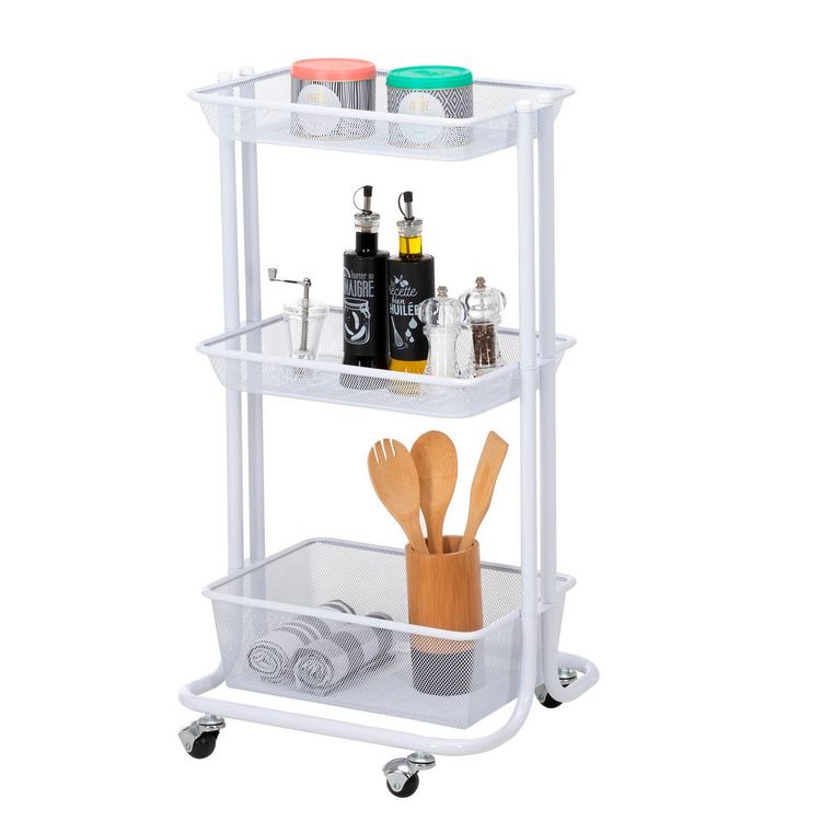 ... avec ses 3 bacs de différentes tailles, est une solution de rangement très pratique. Vous pourrez utiliser ce meuble aussi bien dans votre cuisine afin d'y ranger vos épices et vos ustensiles ou livres de cuisine, que dans votre bureau afin d'y ranger vos affaires et divers accessoires de bureau ou même dans la chambre de vos enfants pour y ranger les jouets, les livres ou les peluches. Peu importe ce que vous en ferez, cet accessoire sera le compagnon idéal au quotidien pour garder ses affaires à portée de main et accessibles de suite. Enfin, grâce à sa petite taille, cette desserte roulante pourra très facilement être rangée dans un coin de la pièce et être déplacée avec facilité.