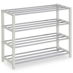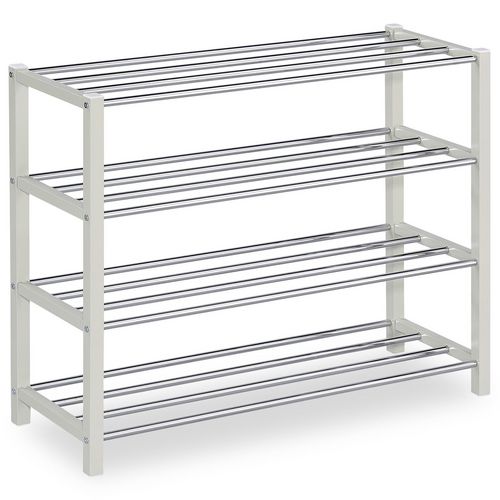... offre suffisamment d'espace de stockage pour y ranger plusieurs paires de chaussures selon vos besoins. Ce range-chaussures pratique et polyvalent trouvera facilement sa place dans votre entrée ou dans un couloir. Très robuste grâce à sa structure en métal, il s'associera facilement avec vos autres meubles de par sa finition chromé. Disponible en finition noir, blanc ou gris, vous trouverez forcément le modèle qui vous convient.