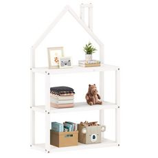 L'étagère pour enfant Lenise ... se distingue par son design unique en forme de maison, qui ajoute une dimension de jeu à l'espace de rangement et stimule l'imagination de votre enfant. Elle est composée de trois niveaux de rangement, parfaits pour organiser livres, jouets, vêtements et autres obje
