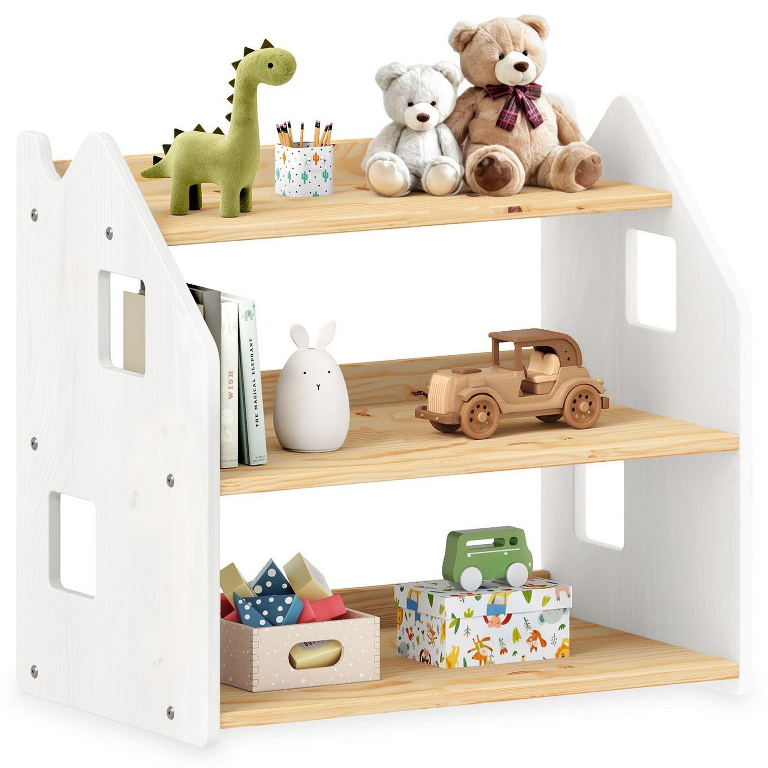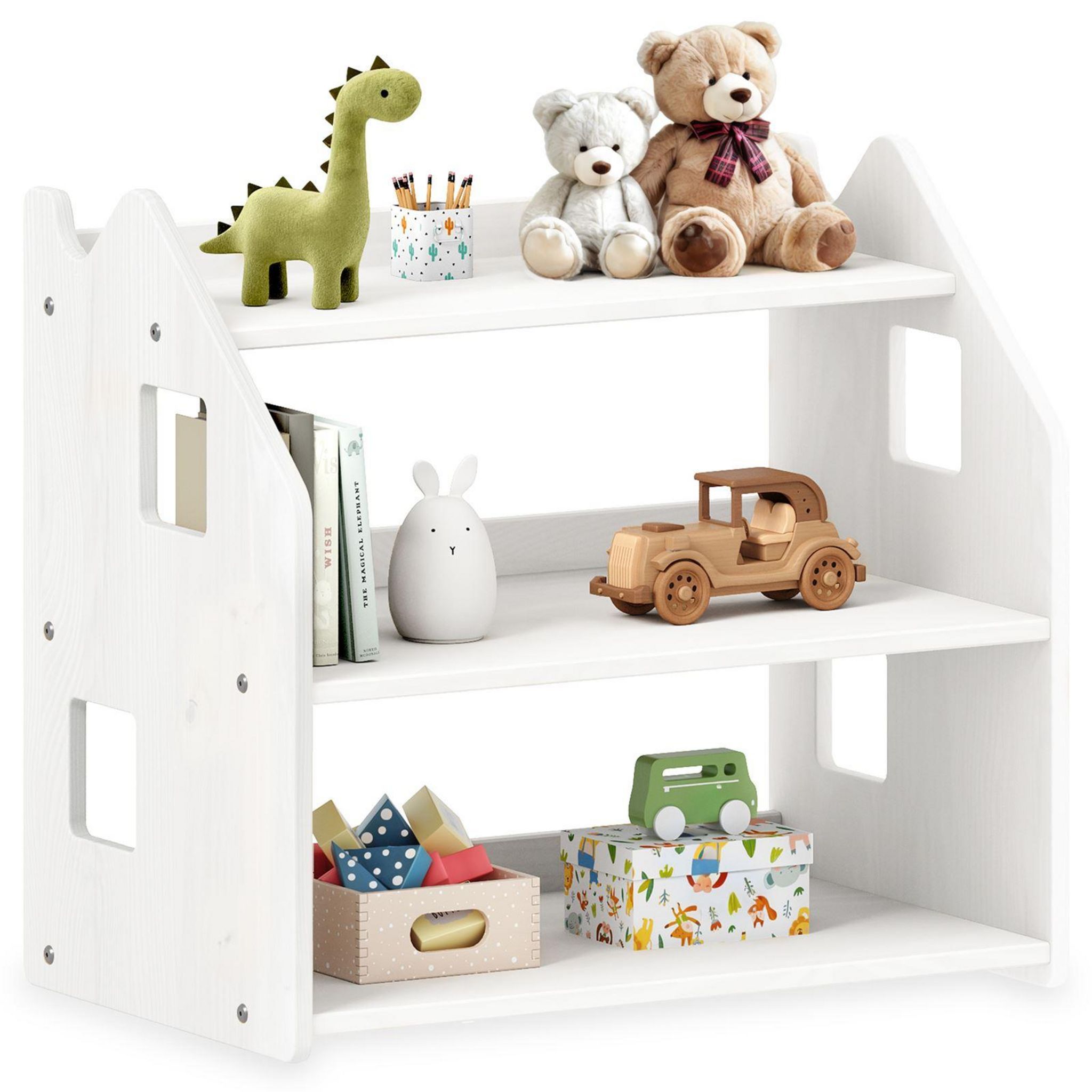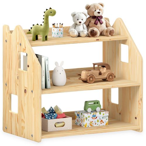 Étagère pour enfant Yasmin Cette étagère en bois de haute qualité est parfaite pour organiser la chambre des enfants. Grâce à ses trois étages et à son design en forme de maison, elle permet un rangement accessible pour les enfants tout en ajoutant une touche décorative à la pièce. Ce meuble est co