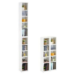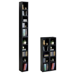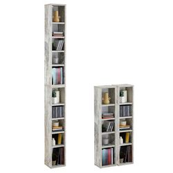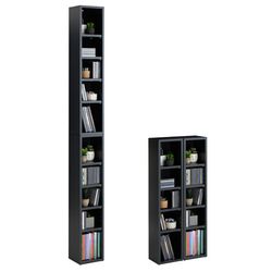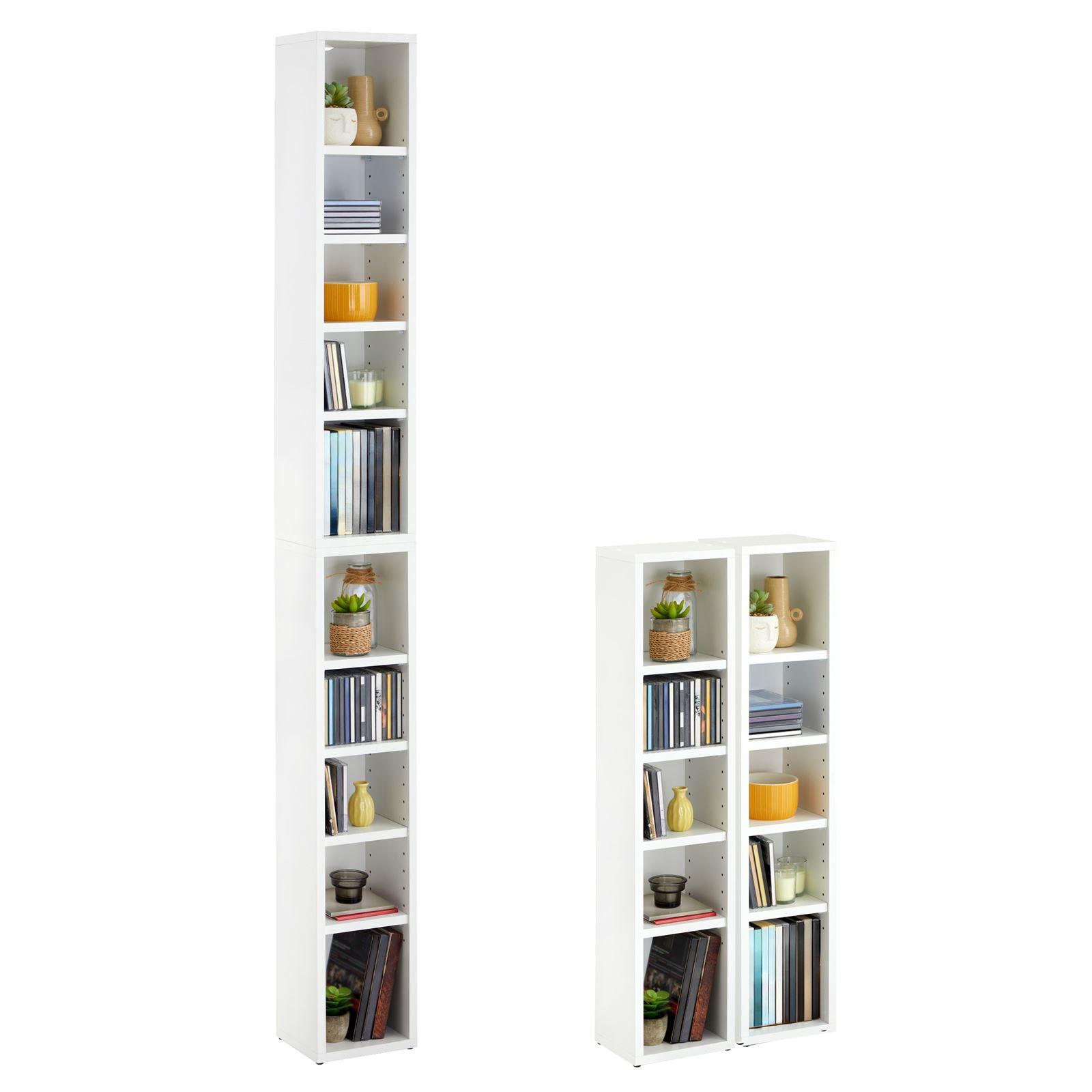 ... se compose de 2 colonnes que vous pouvez disposer l'une à côté de l'autre ou bien l'une sur l'autre en toute sécurité grâce au kit de fixation inclus. De par son design étroit et peu encombrant, cette bibliothèque trouvera facilement sa place dans votre intérieur selon l'espace disponible. De plus, les tablettes sont réglables en hauteur, vous permettant ainsi de ranger tous vos CD, DVD ou disques BLU-RAY selon vos besoins.