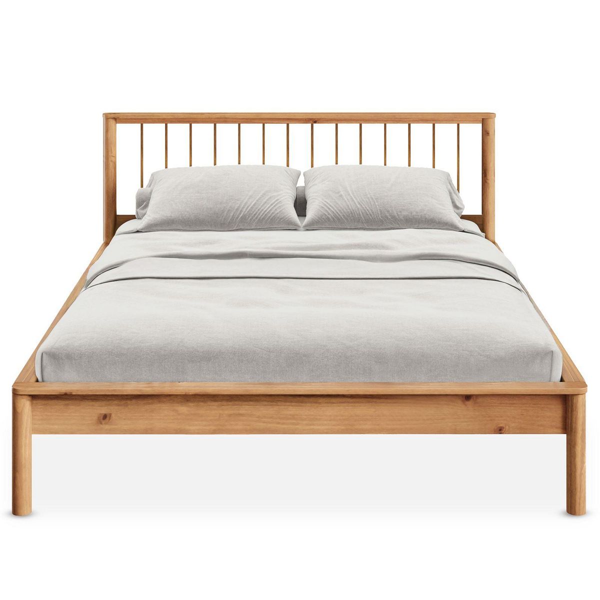Apportez une touche naturelle et élégante à votre chambre avec ce lit double en bois massif. Son design sobre et sa tête de lit à barreaux lui confèrent un style intemporel. Robuste et stable, il est équipé d'un sommier à lattes inclus et d'une entretoise centrale avec pieds de soutien. Facile à entretenir, il s'intègre parfaitement dans tout type d'intérieur et assure un confort optimal pour des nuits paisibles.