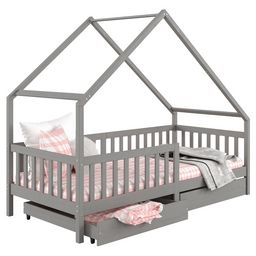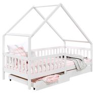 ... trouvera parfaitement sa place dans tous les espaces, même mansardés, grâce à son design asymétrique. Ce lit en forme de maisonnette raviera votre enfant qui pourra l'utiliser comme coin de jeux en journée, et y passer une douce nuit. Avec ses 2 grands tiroirs, vous pourrez facilement y ranger tous les jouets et linges de lit. Les barrières de protection assurent la sécurité de votre enfant et sa structure en pin massif pourra être agrémentée de décoration afin d'en faire un lieu confortable !.