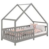 Lit cabane asymétrique CORA 90 x 190 cm en pin massif lasuré gris
