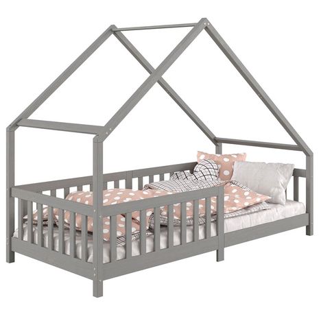Lit cabane asymétrique CORA 90 x 200 cm en pin massif lasuré gris
