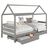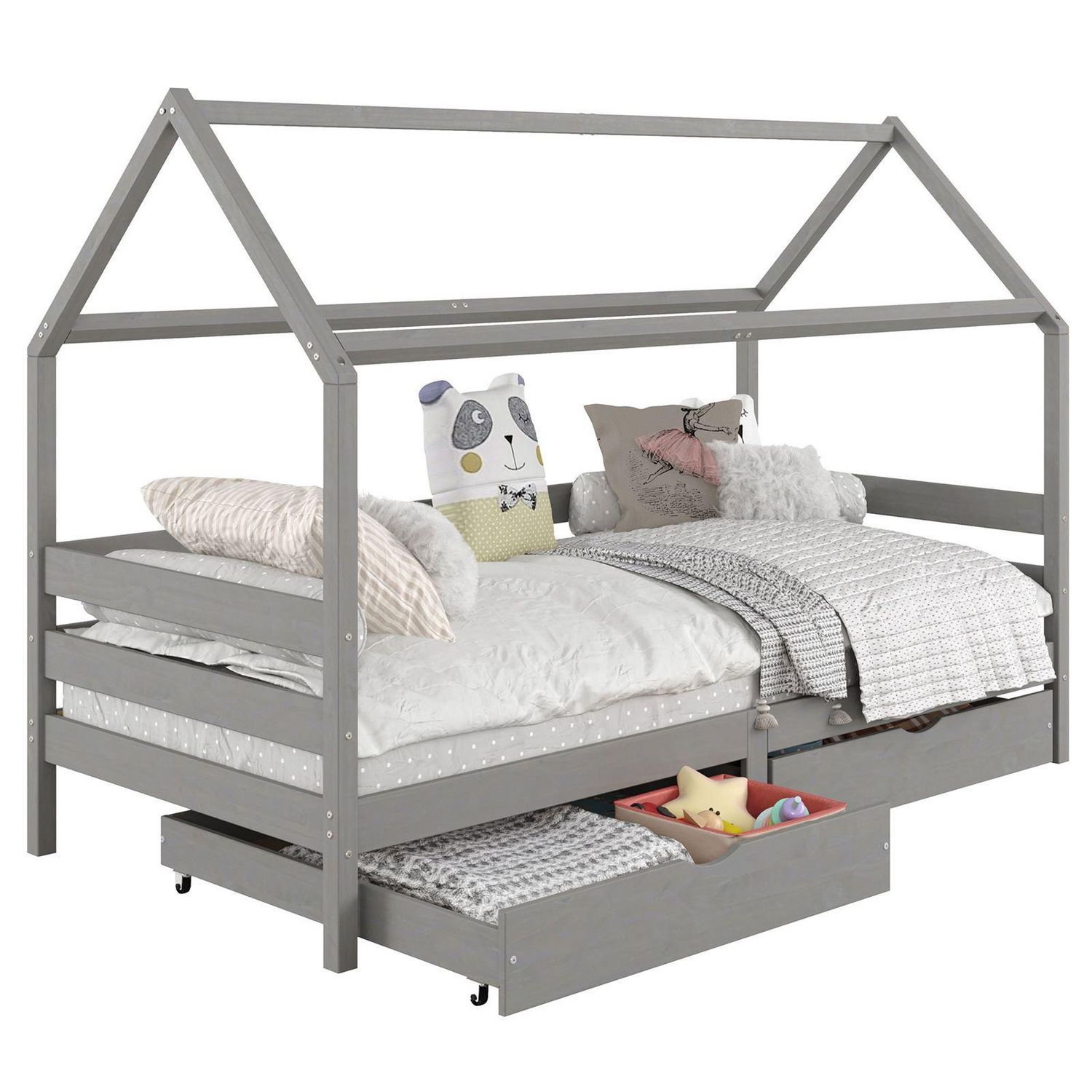 Lit cabane CLIA 90 x 190 cm avec tiroirs, en pin massif lasuré gris