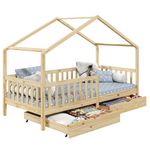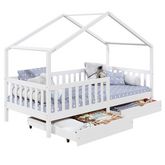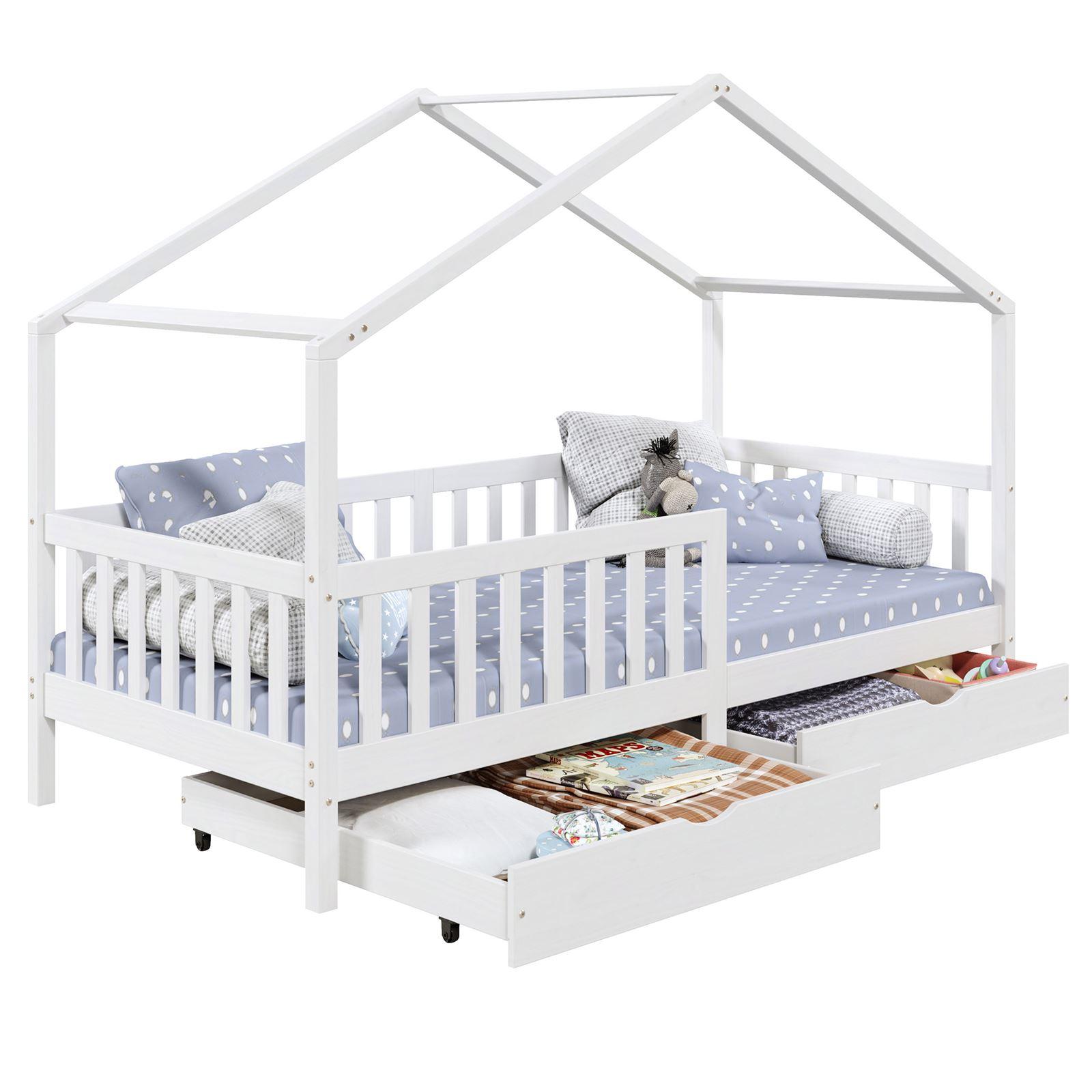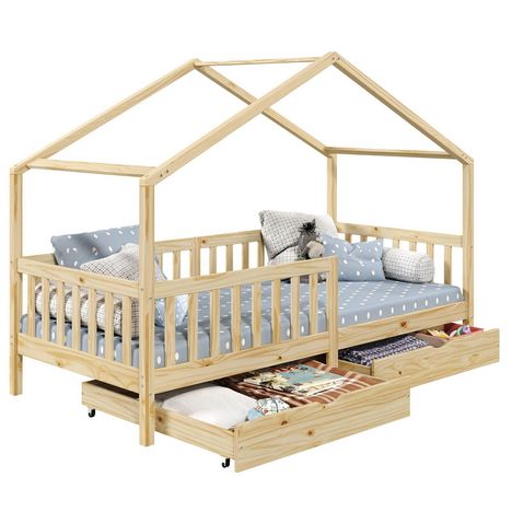 ... deviendra un espace de vie à part entière pour votre enfant qui pourra non seulement y dormir mais aussi y jouer ou lire. Les 2 grands tiroirs situés sous le lits, vous permettront d'y ranger tous les jouets et le linge de lit. Grâce aux barrières entourant le lit, votre enfant pourra dormir en toute sécurité. Sa structure en pin massif en forme de maisonnette se mariera parfaitement avec le reste de votre mobiler, et vous pourrez facilement y ajouter des objets de décoration !