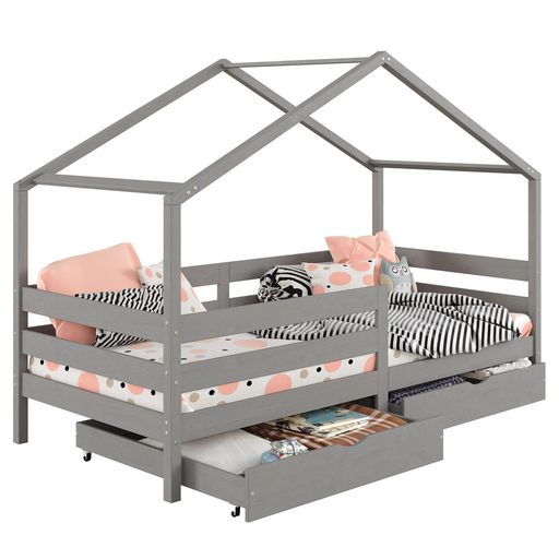 ... permettra à votre enfant de se créer son univers, pour y passer des nuits pleines de rêves. Grâce à ses 2 tiroirs très fonctionnels, vous pourrez facilement y ranger tous les jouets de votre enfant ainsi que du linge de lit. Munis également de barrières de protection, celles-ci assureront la sécurité de votre enfant durant son sommeil. Sa structure très épurée en forme de maison en fait un élément décoratif à part entière, qui pourra être agrémenté de guirlandes ou de voilages.