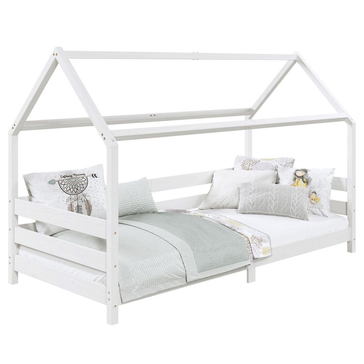 Lit cabane FINA 90 x 190 cm, en pin massif lasuré blanc