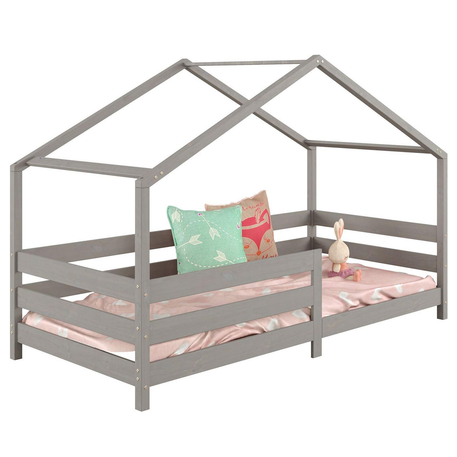 Lit cabane RENA 90 x 190 cm, en pin massif lasuré gris