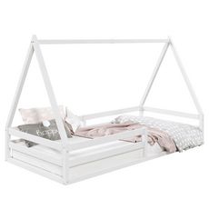 ... fera le bonheur de votre enfant. Avec sa structure en forme de cabane, votre enfant s'endormira sereinement. Des barrières de protection sur le côté du lit assurent sa sécurité. Ce lit simple 1 place en bois massif, inspiré des lits Montessori, favorise le développement de l'autonomie de votre enfant en bas âge. Le cadre de lit avec le toit vous permettra d'ajouter de la décoration tels que des rideaux ou des guirlandes de lumière pour créer une véritable atmosphère cocooning.