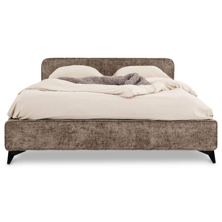 Lit double LEVERDA 140 x 190 cm, revêtement en tissu - Brun