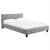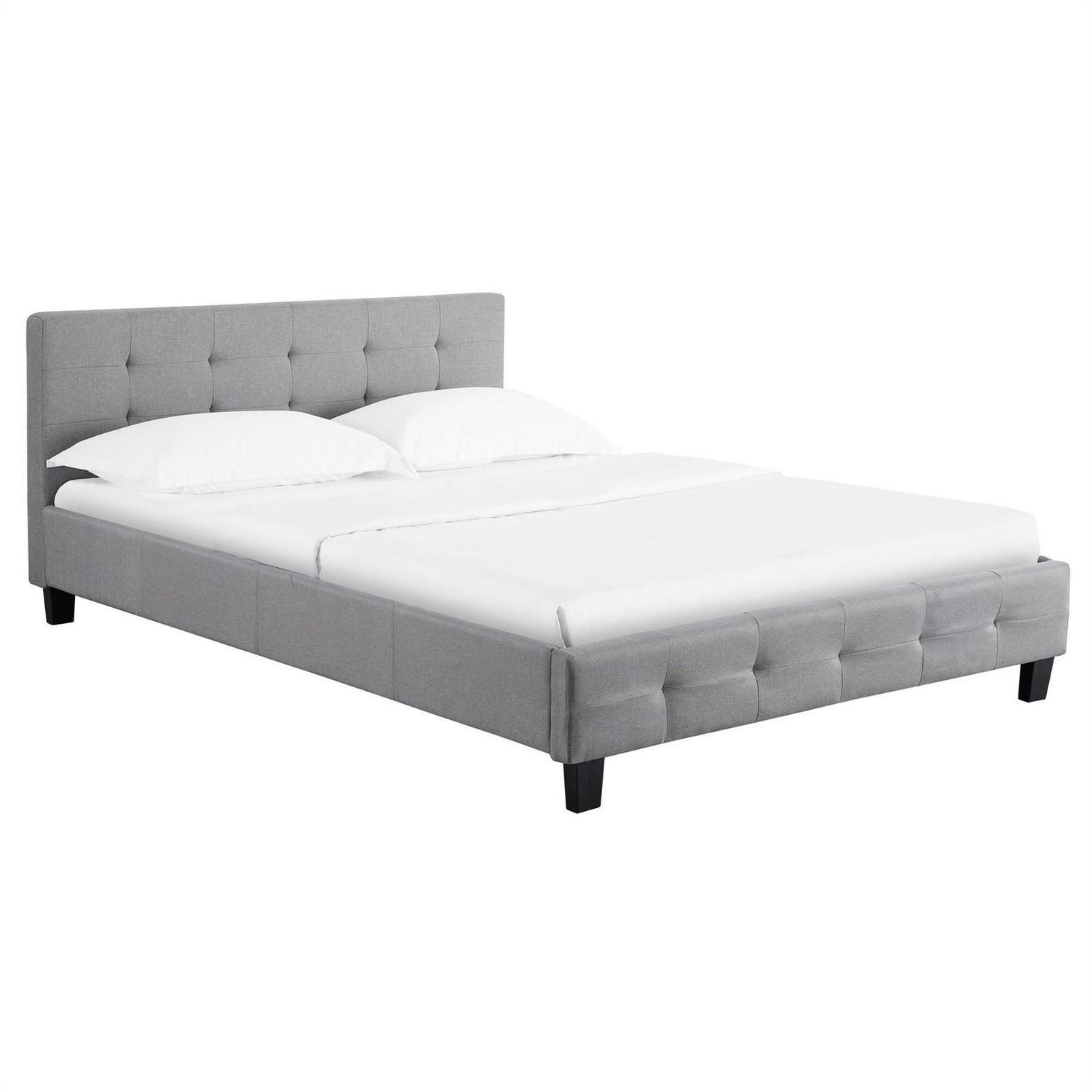 - Le cadre du lit est revêtu d'un tissu de coloris gris.