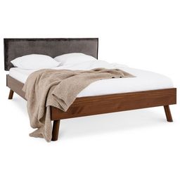 Lit futon avec tête de lit KARRI 140 x 200 cm - gris foncé et châtaignier