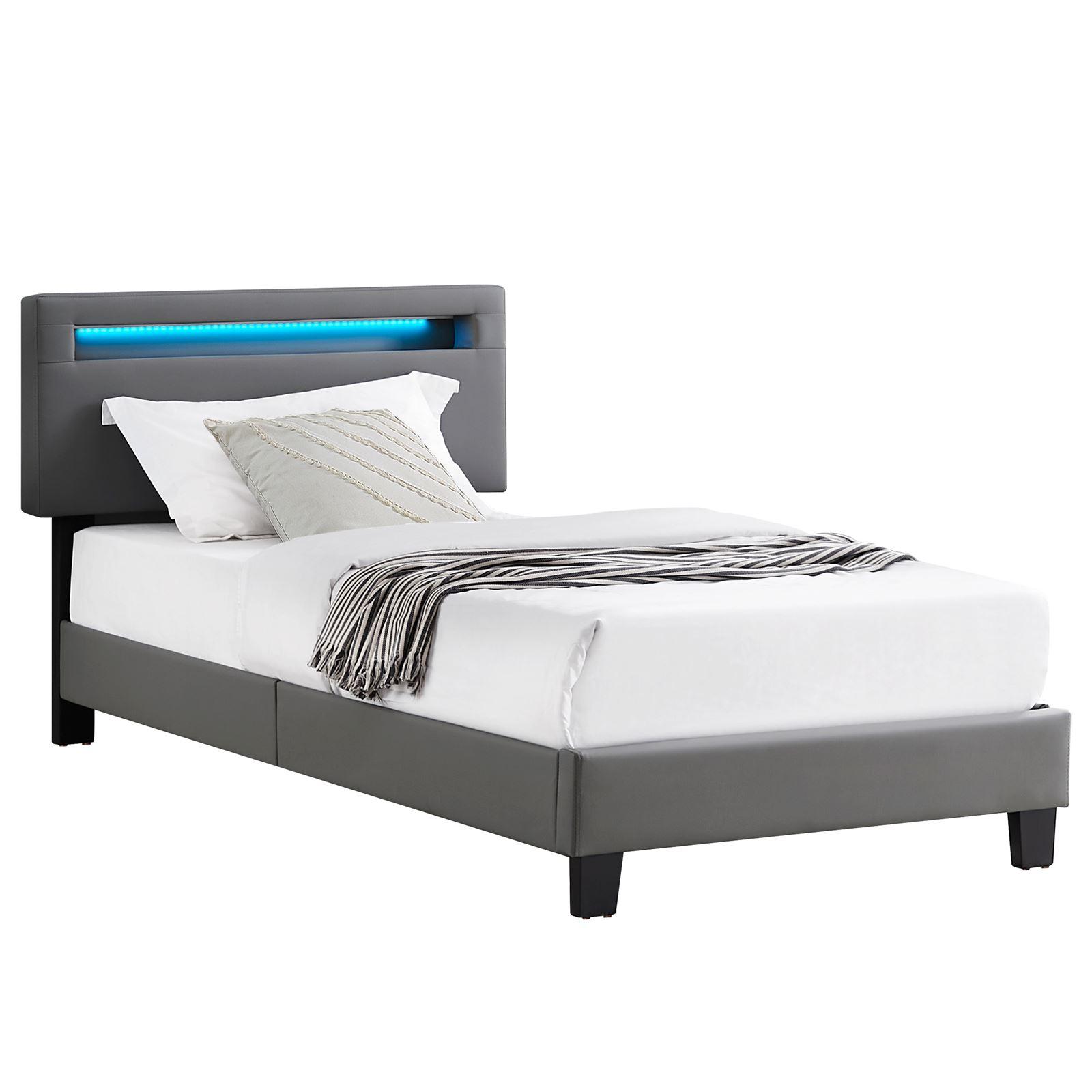 Lit LED simple EVAN 90x190 cm, avec sommier, revêtement en synthétique gris