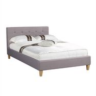 Lit simple LILLE, 120 x 190 cm, capitonné avec sommier, revêtement en tissu gris