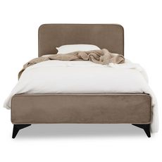Lit simple Ravello Ce lit une place au design épuré est parfait pour aménager une chambre moderne. Avec son cadre en bois et métal robuste, il est revêtu d'un tissu doux et résistant. La taille de couchage 90x190 cm en fait un choix idéal pour une personne. Son sommier à lattes est inclus, assurant