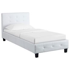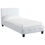 Lit simple REVE, 90 x 190 cm, capitonné avec sommier, revêtement synthétique blanc