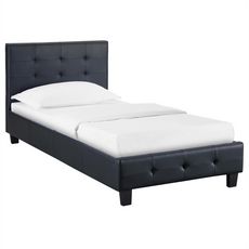- La tête et le pied du lit sont rembourrés pour un effet capitonné.