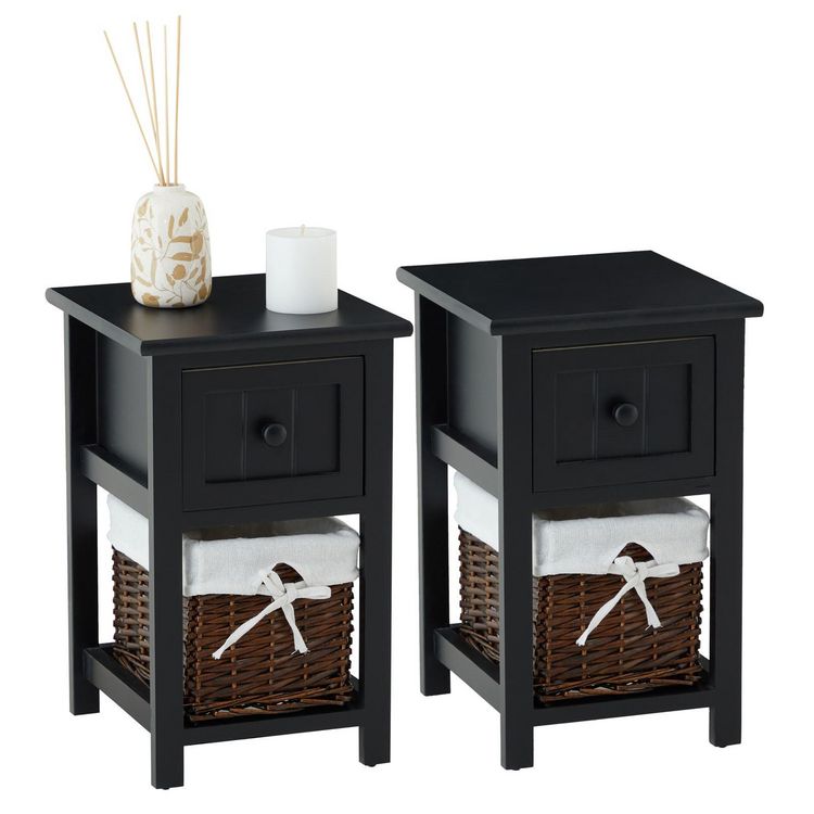 Lot de 2 tables de chevet MESSINA 1 tiroir et 1 panier, en bois noir