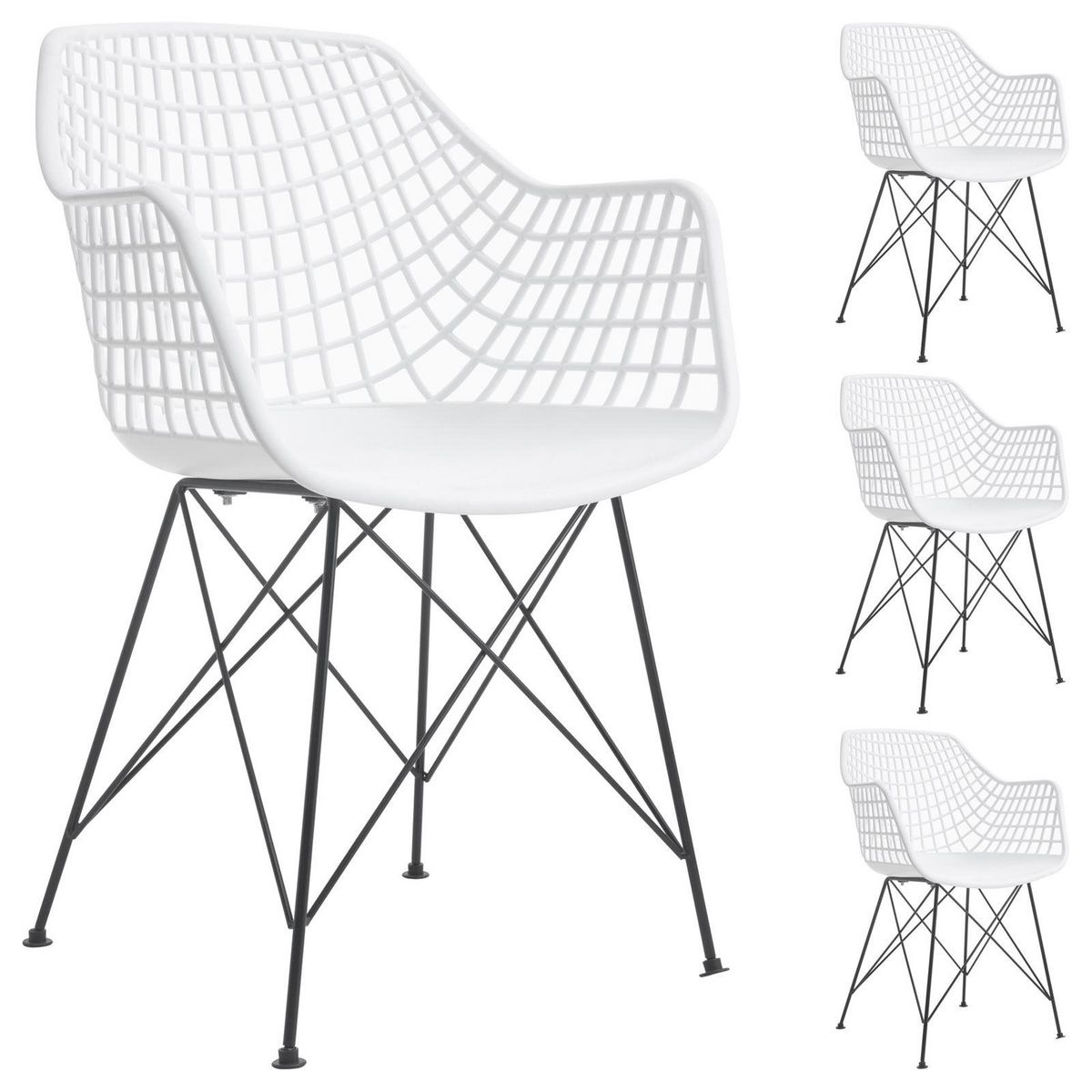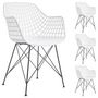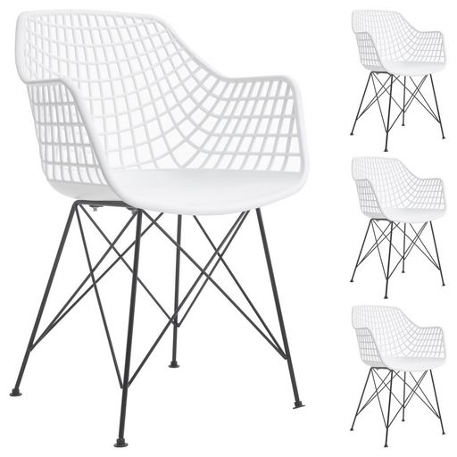 ... se rendront très vite indispensables. Utilisables comme chaises de salle à manger ou chaises de cuisine, ou bien comme fauteuils d'appoint dans une chambre, une entrée ou un bureau, ces chaises vous procureront un confort d'assise optimal grâce à leur assise en forme de coque enveloppante et à la présence d'accoudoirs. Enfin, leur design retro avec un dossier grillagé, des pieds croisés et l'association des matières plastique et métal apporteront une touche de style industriel à votre table. Article non homologué pour un usage professionnel (ex. : restauration).