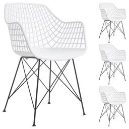 Lot de 4 chaises ALICANTE, en plastique blanc et métal noir