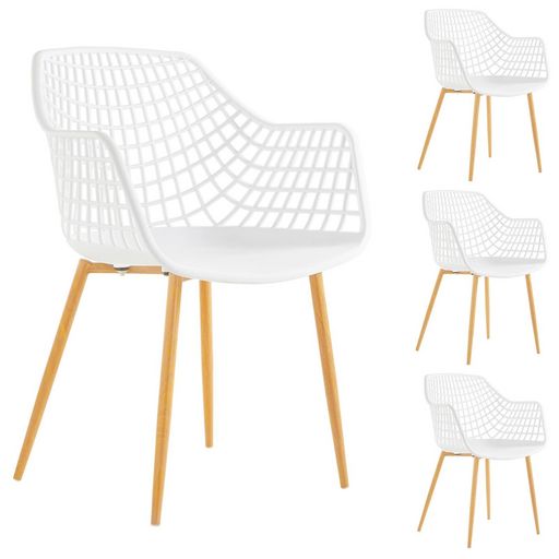 ... se rendront très vite indispensables. Utilisables comme chaises de salle à manger ou chaises de cuisine, ou bien comme fauteuils d'appoint dans une chambre, une entrée ou un bureau, ces chaises vous procureront un confort d'assise optimal grâce à leur assise en forme de coque enveloppante et à la présence d'accoudoirs. Enfin, leur design retro avec un dossier à structure en treillis mais aussi l'association du plastique et du métal apporteront une touche de style industriel en plus dans votre intérieur. Article non homologué pour un usage professionnel (ex. : restauration).