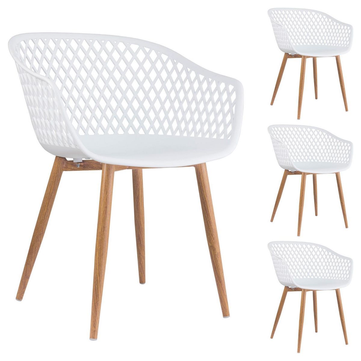 ... se rendront très vite indispensables. Utilisables comme chaises de salle à manger ou chaises de cuisine, ou bien comme fauteuils d'appoint dans une chambre, une entrée ou un bureau, ces chaises vous procureront un confort d'assise optimal grâce à leur assise en forme de coque enveloppante et à la présence d'accoudoirs. Enfin, leur design unique avec une architecture en losange apporteront une touche de style scandinave en plus dans votre intérieur. Article non homologué pour un usage professionnel (ex. : restauration).